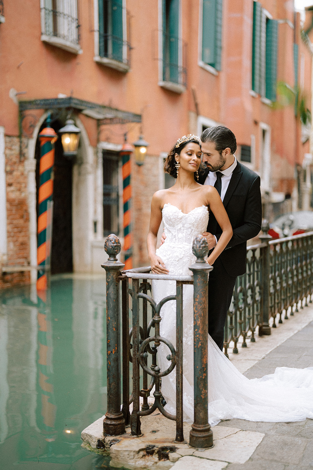 Le marié trouve ici une place esthétique forte, élégante, assumée — en harmonie totale avec le stylisme de la mariée.
