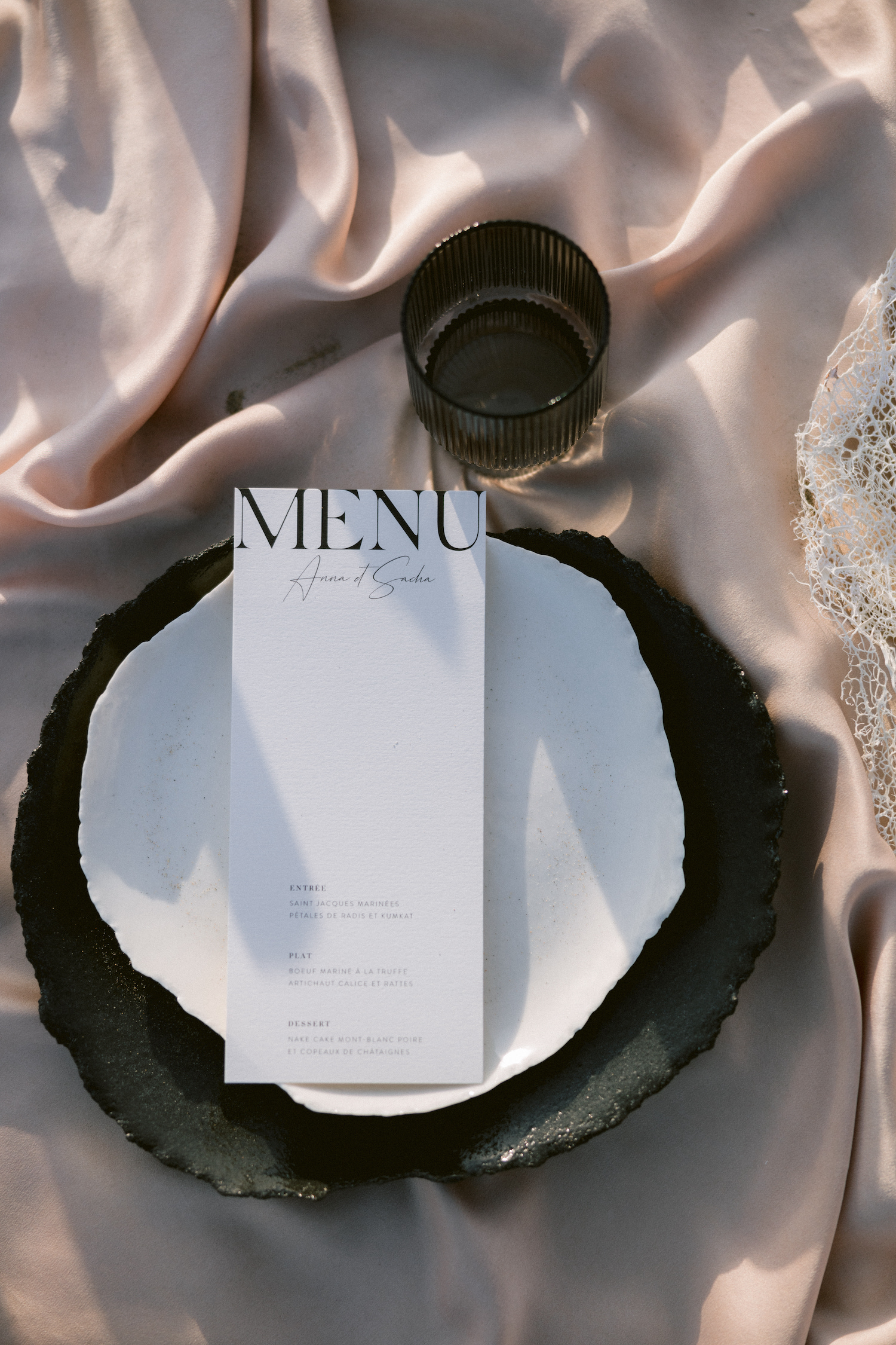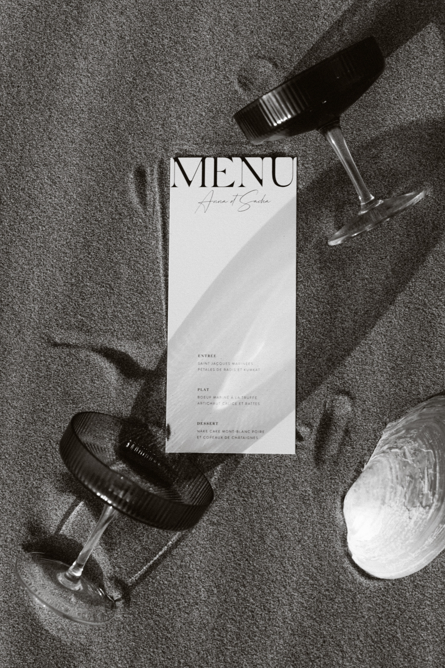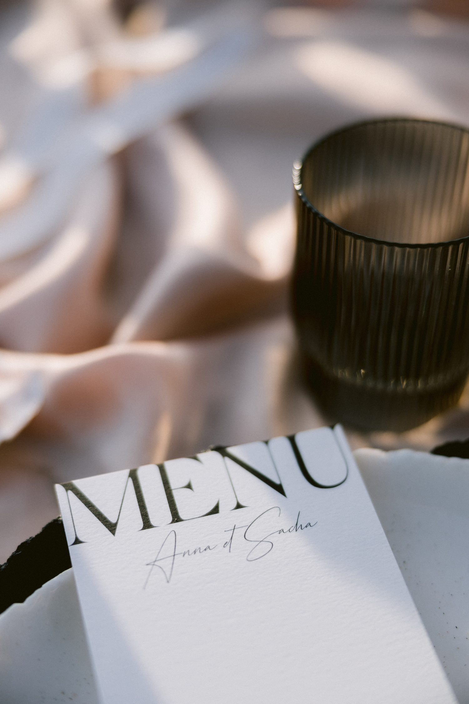 La papeterie, vient de CMO Studio. J’ai demandé à Claire Mazarrello, fondatrice et D.A, de me faire la surprise et de me dévoiler la papeterie sur place (sur la base d’un moodboard quand même). Une fois de plus, coup de foudre pour son travail et pour son interprétation.