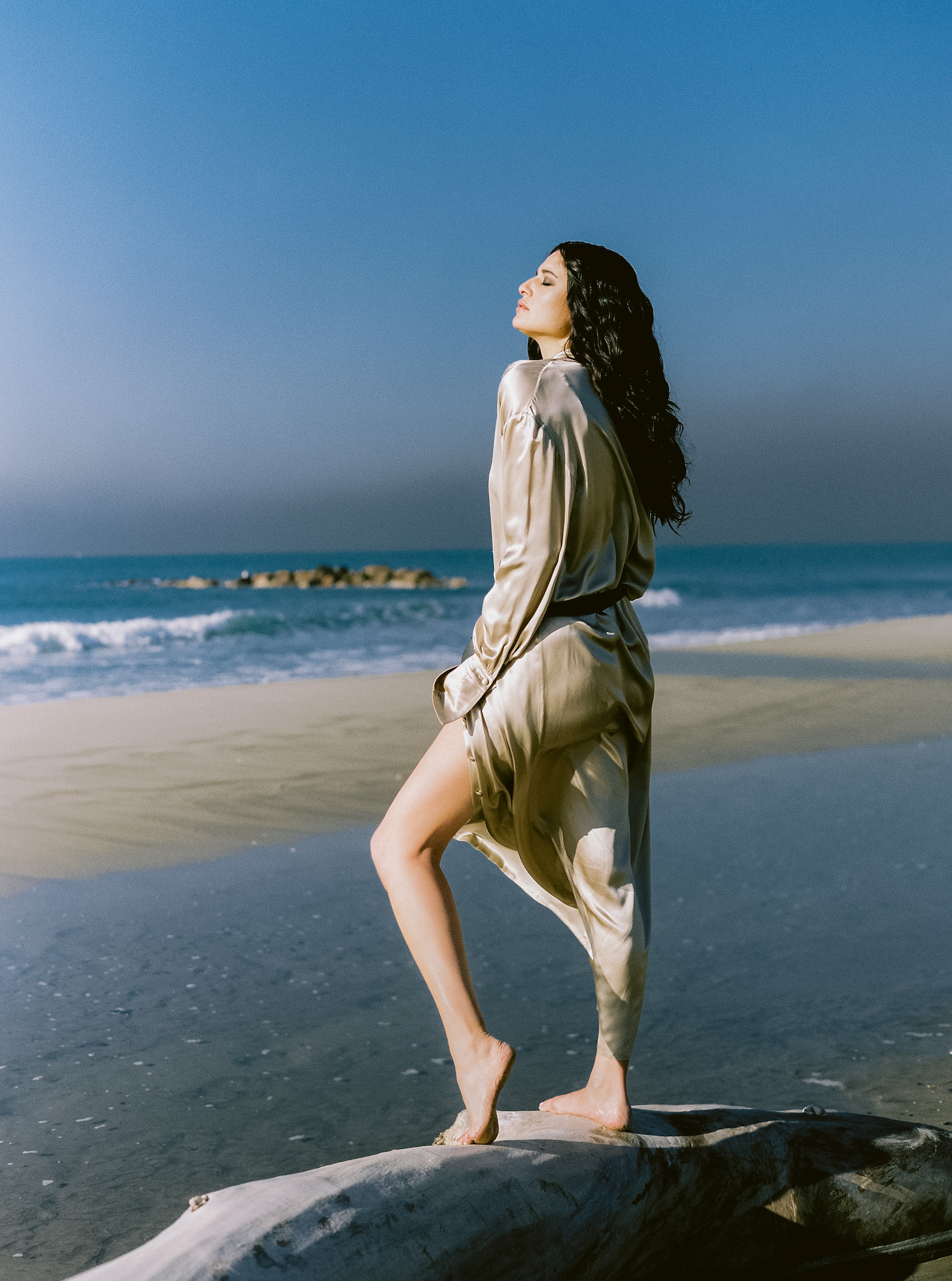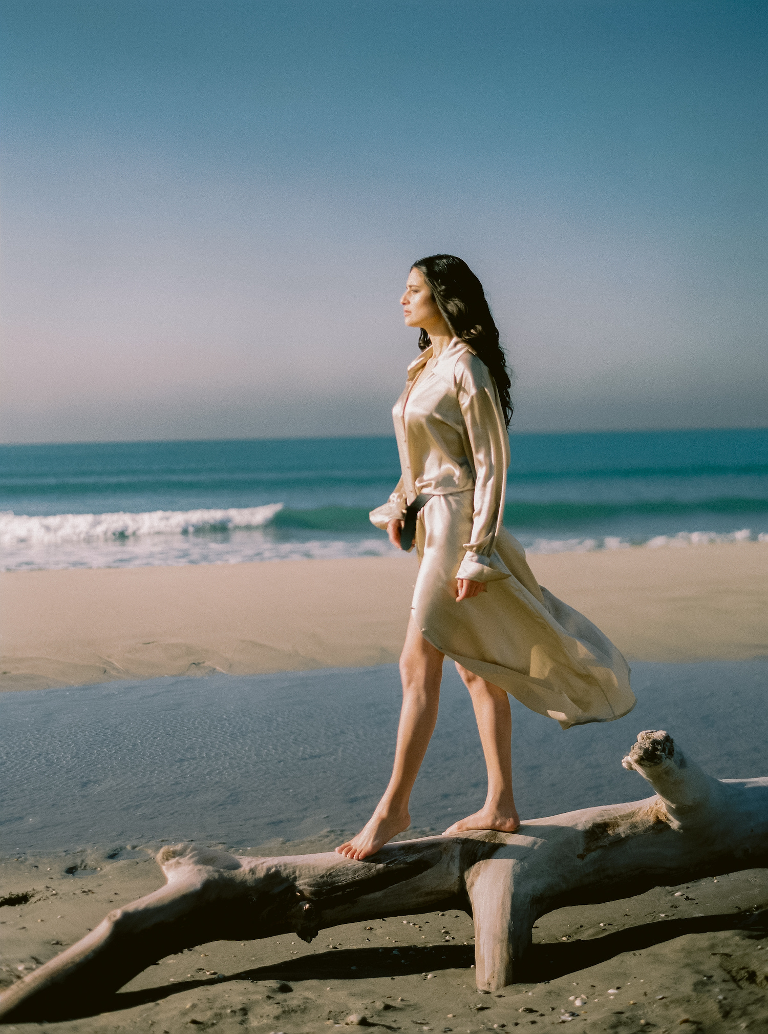 Pour cet éditorial, la marque de vêtements Kyha Studio était une évidence, une envie très forte. La marque est en Australie. Elle a tout de suite dit oui lorsqu’elle a vu le moodboard. Elle nous a envoyée des pièces sublimes et toute la sélection que nous avions demandée.