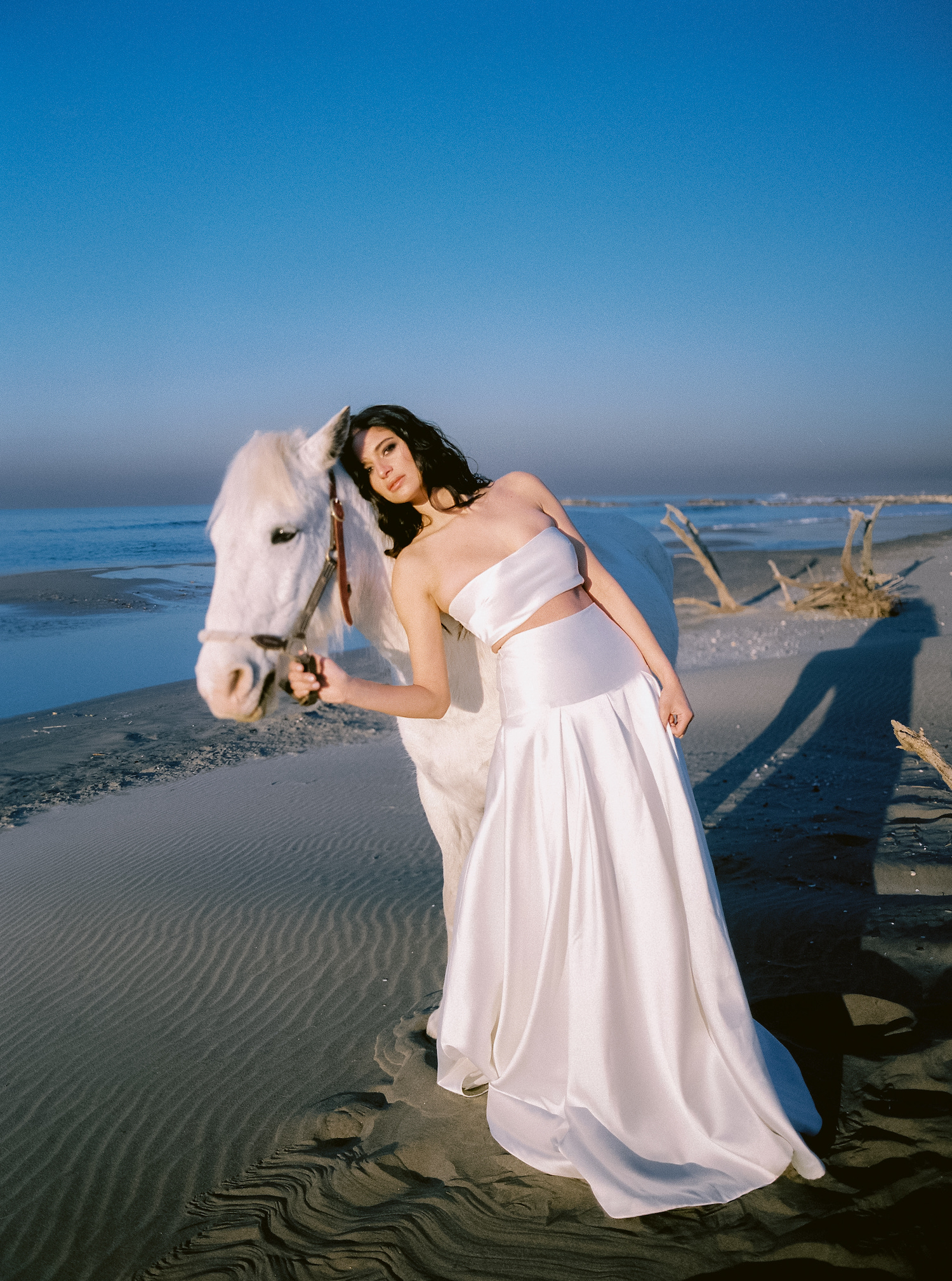 Audrey avait envie de fluidité et de légèreté. Alors j’ai contacté la marque Oud Paris pour les robes aériennes et légères en soie.