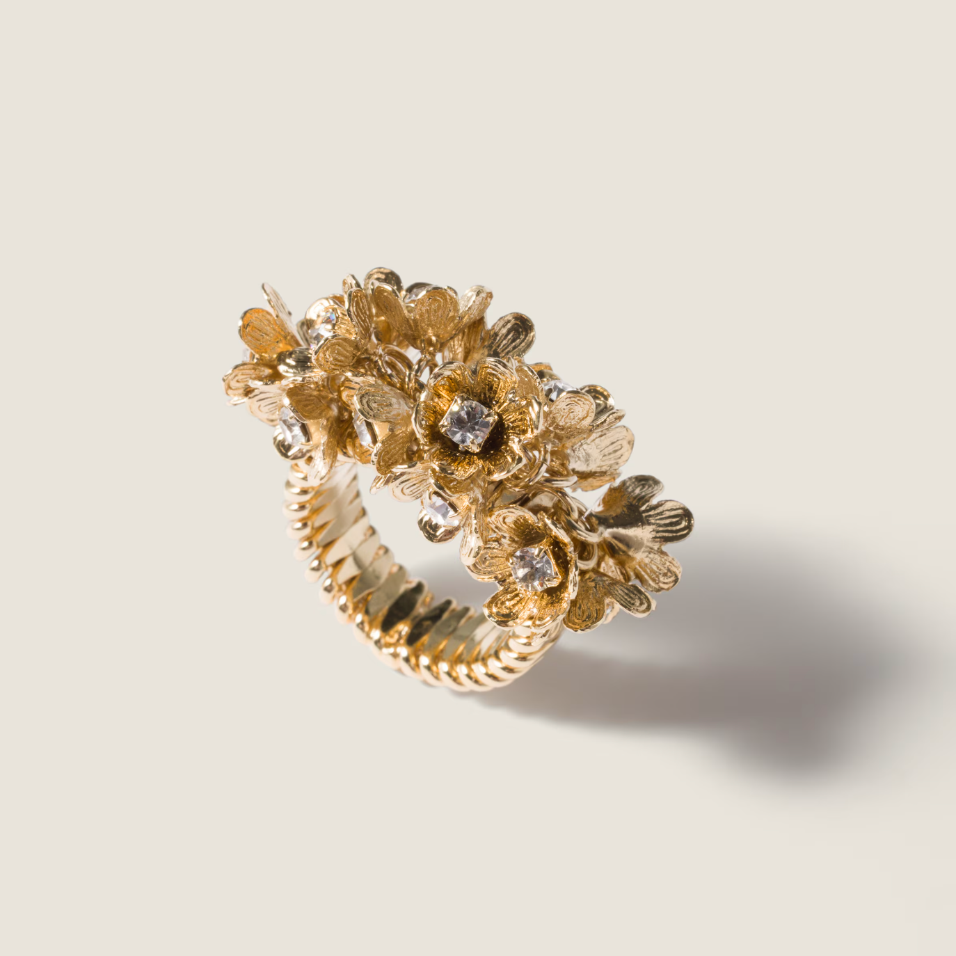 Les suggestions classiques prennent vie dans le design floral de cette bague, où des cristaux scintillants ajoutent du charme et du mouvement à chaque look.