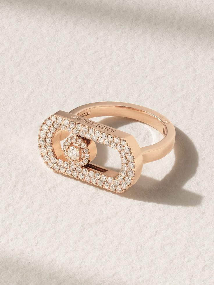 La bague So Move de Messika porte bien son nom : grâce à une technique innovante, signature de la maison, ses diamants centraux se déplaceront au gré de vos mouvements dans sa découpe arrondie. Elle est réalisée à la main en or rose 18 carats (750/1000), gravée du logo de la marque, et sertie de deux rangées de gemmes pavées qui mettent en lumière sa silhouette. Laissez-lui entièrement la vedette ou combinez-la à d’autres modèles aux métaux différents pour un effet d’accumulation sophistiqué.