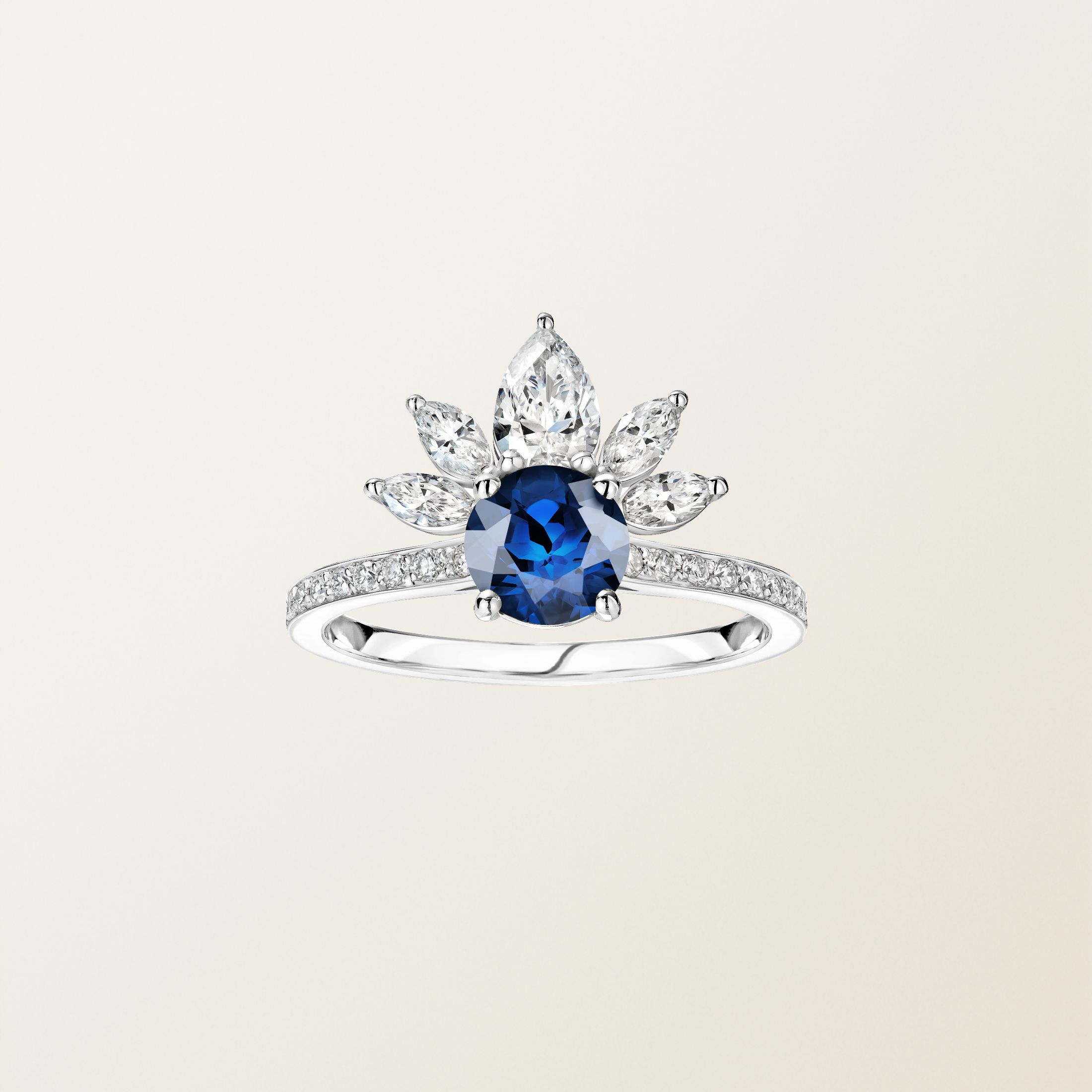 - Une bague de fiançailles qui se combine parfaitement à des alliances droites