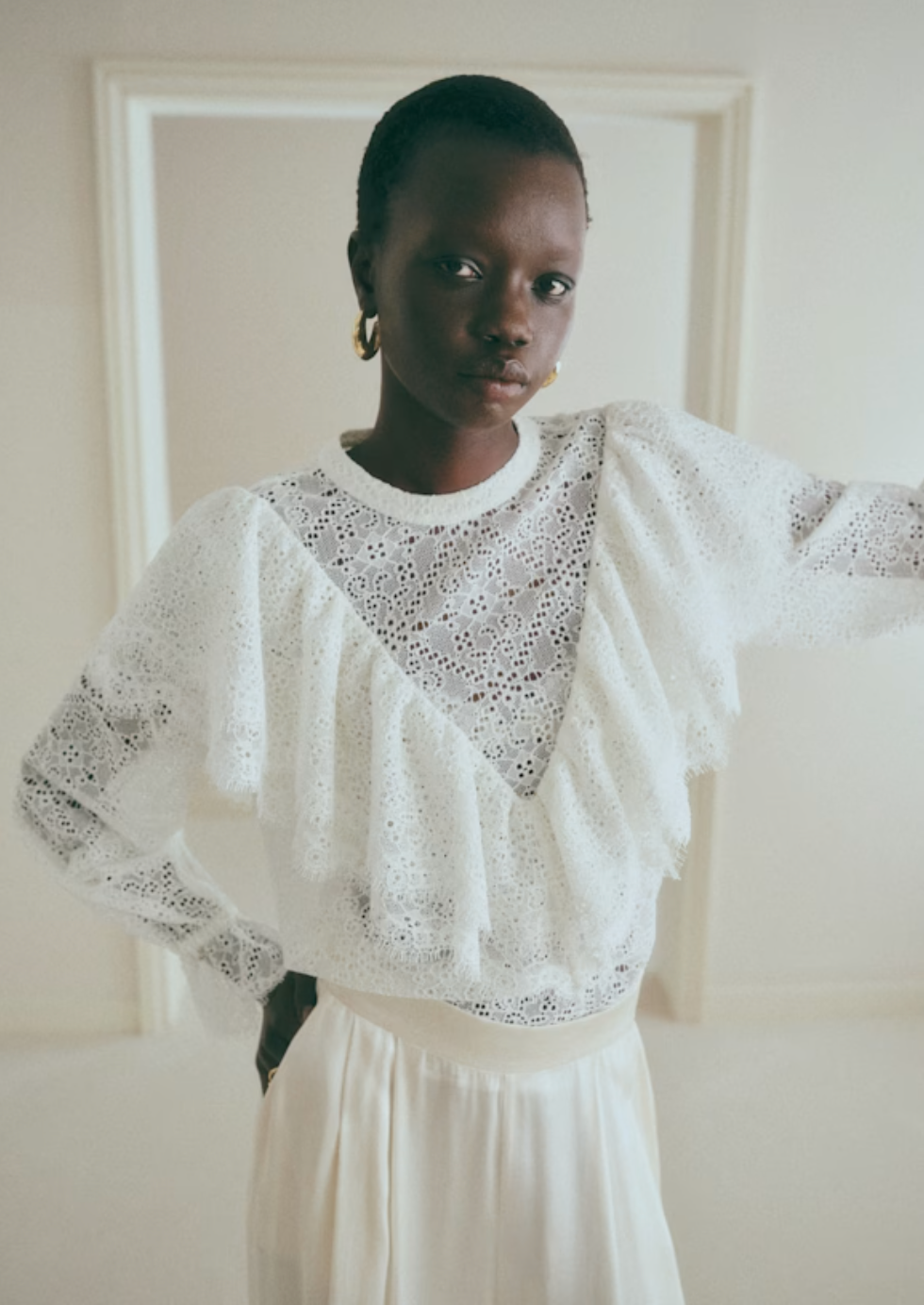 Catégories : Chemises et blouses de la mariée, Les mailles de la mariée, Look de jour, Tenues de Noël femme Étiquettes : Blouse en dentelle, Dress code écru, la mariée, Lifestyle, Maille femme, Noël 2025, Pull de la mariée, Sézane