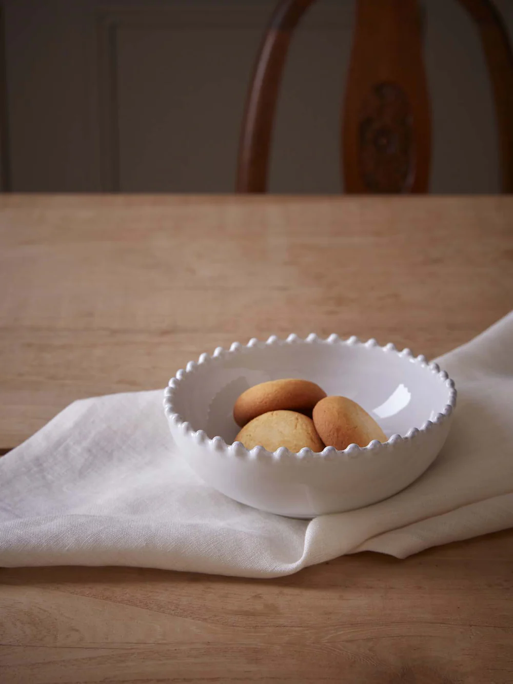 La gamme Perle est produite par la marque de céramique de table Costa Nova. Originaire du charmant village éponyme situé sur la côte Portugaise, Costa Nova est reconnue pour la qualité et la durabilité de ses produits. La gamme Perle a été élaborée dans un style élégant et raffiné ; elle est reconnaissable par sa finition dentelée.