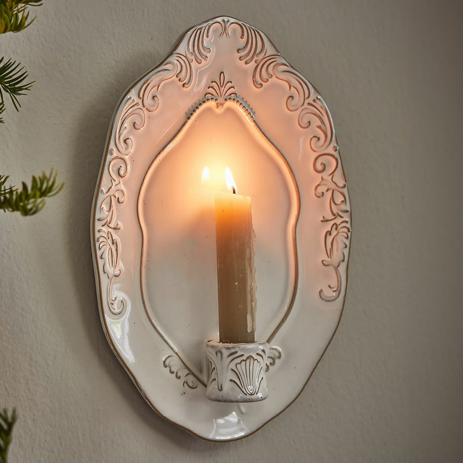 Le romantisme d’antan trouve encore des adeptes de nos jours. Ces derniers ne pourront que se réjouir face à ce joli chandelier mural en faïence émaillée faisant penser à une belle assiette et dont la conception a suivi la tradition. Les fioritures et les jolis ornements sont également le fruit d’un minutieux travail artisanal. Le bougeoir accueille de fines bougies longues dont la lumière vacillante créera une ambiance chaleureuse chez vous. Un accessoire décoratif original pour des intérieurs vintage, dans le couloir, le salon ou la salle à manger. L’élégant bougeoir attire les regards en journée et confère le soir un effet cocooning à votre environnement.