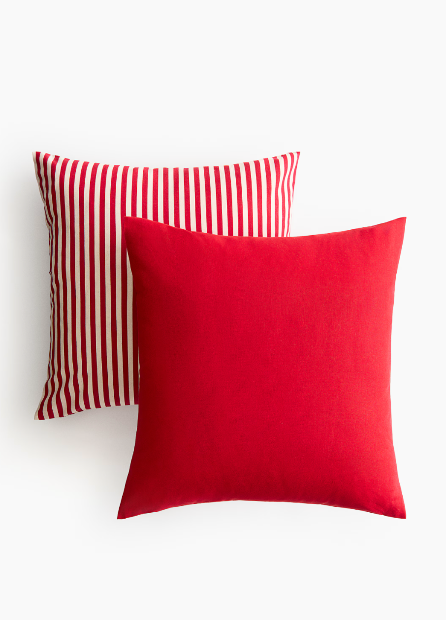 Housses de coussin en coton tissé aux designs coordonnés. Modèle avec fermeture à glissière sur un côté.