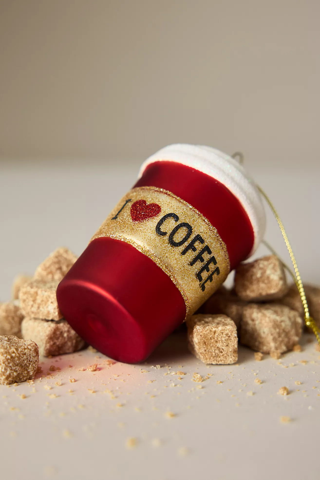 Obtenez votre dose de caféine de Noël avec cet ornement de tasse à café rouge joyeux, agrémenté d’une mousse scintillante pour une touche festive.