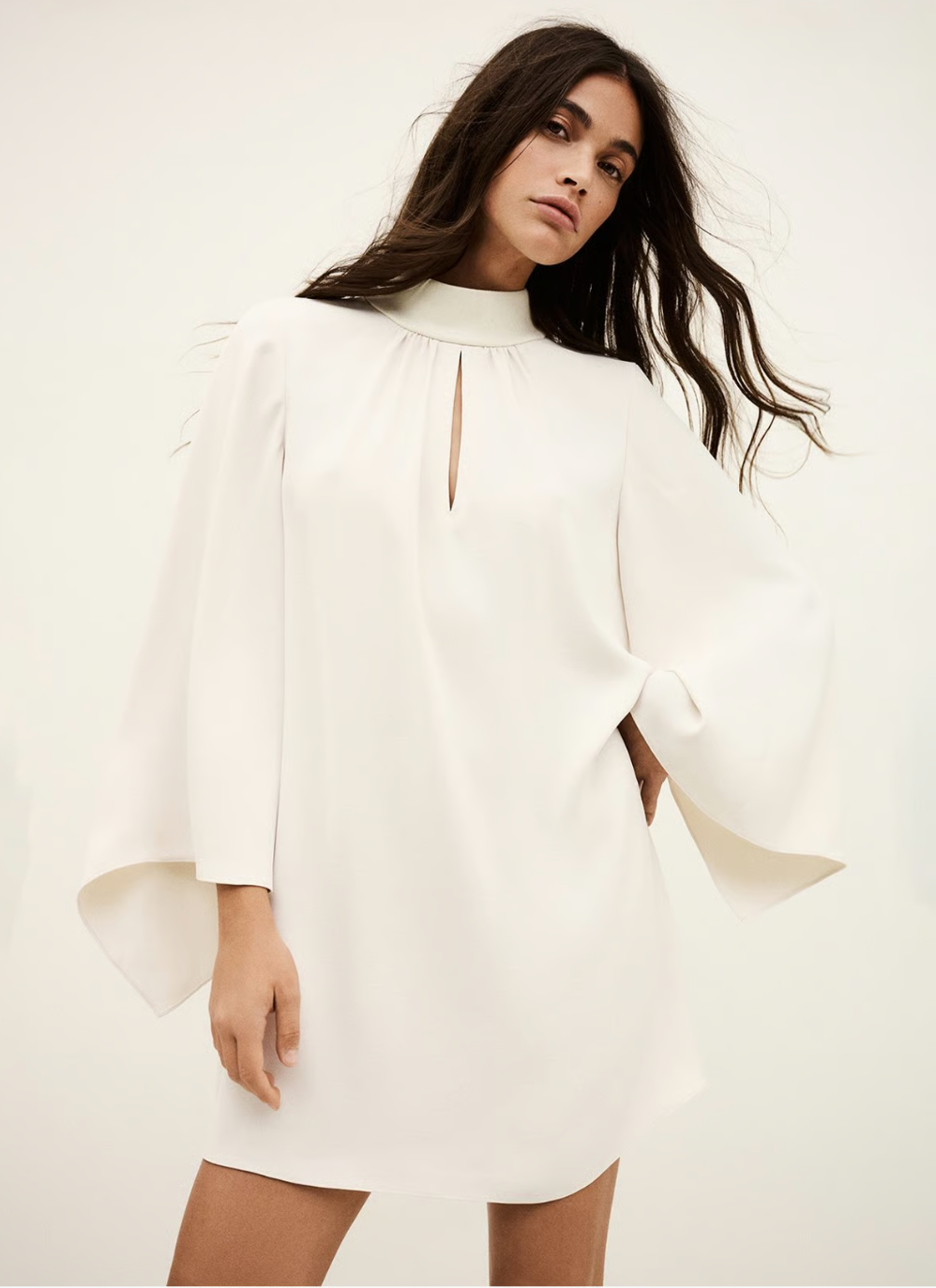 Col montant Coupe droite Manches longues évasées ouverture goutte d’eau avant Fermeture goutte d’eau du dos Aspect uni