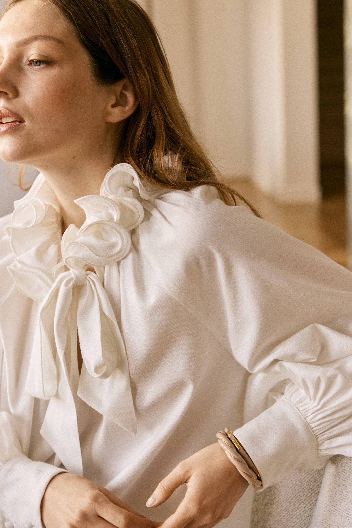 En plus d’être tellement chic et intemporelle, la blouse à col noué est si versatile et facile à matcher: vous pourrez facilement l’associer à tout votre dressing. Avec son col victorien revisité, Le Théodore c’est la statement piece qui fera chavirer votre coeur. Confectionné dans de merveilleuses matières aussi fluides qu’aériennes, sa silhouette légèrement loose lui donne une allure folle résolument moderne, tandis que son col à volants escargot apporte une petite touche de romantisme. Le Théodore, c’est la pièce de mi-saison idéale, que l’on peut porter sous nos mailles préférées ou, dès que le soleil revient, seule pour un effet wahou.