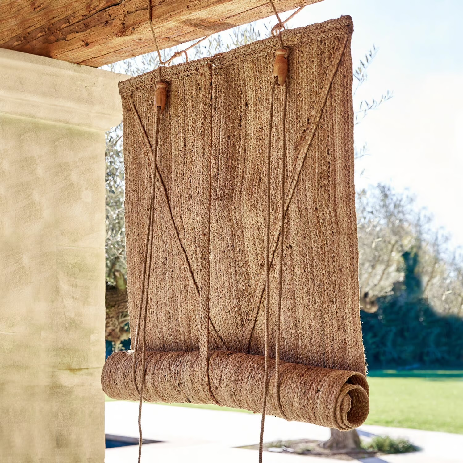 Protège du soleil et des regards indiscrets. Réglable individuellement en hauteur. S’accorde parfaitement avec un style bohème. Les petits extras comme ce store sont particulièrement appréciés pour ajouter du confort à vos belles journées d’été en terrasse. Non seulement il protège des regards indiscrets, mais aussi du soleil ! Son tissu épais en fibres de jute naturelles se caractérise surtout par des couleurs légèrement nuancées qui confèrent à ce store un style unique. Des anneaux de suspension rapportés sur le haut du store vous permettront de l’accrocher facilement à un mur. L’envers est doté d’un mousqueton et d’une longue ficelle en jute avec des œillets. Ces derniers se fixent au mousqueton à la hauteur souhaitée. Cet accessoire, qui s’accordera parfaitement avec un style bohème, est une jolie alternative aux rideaux.