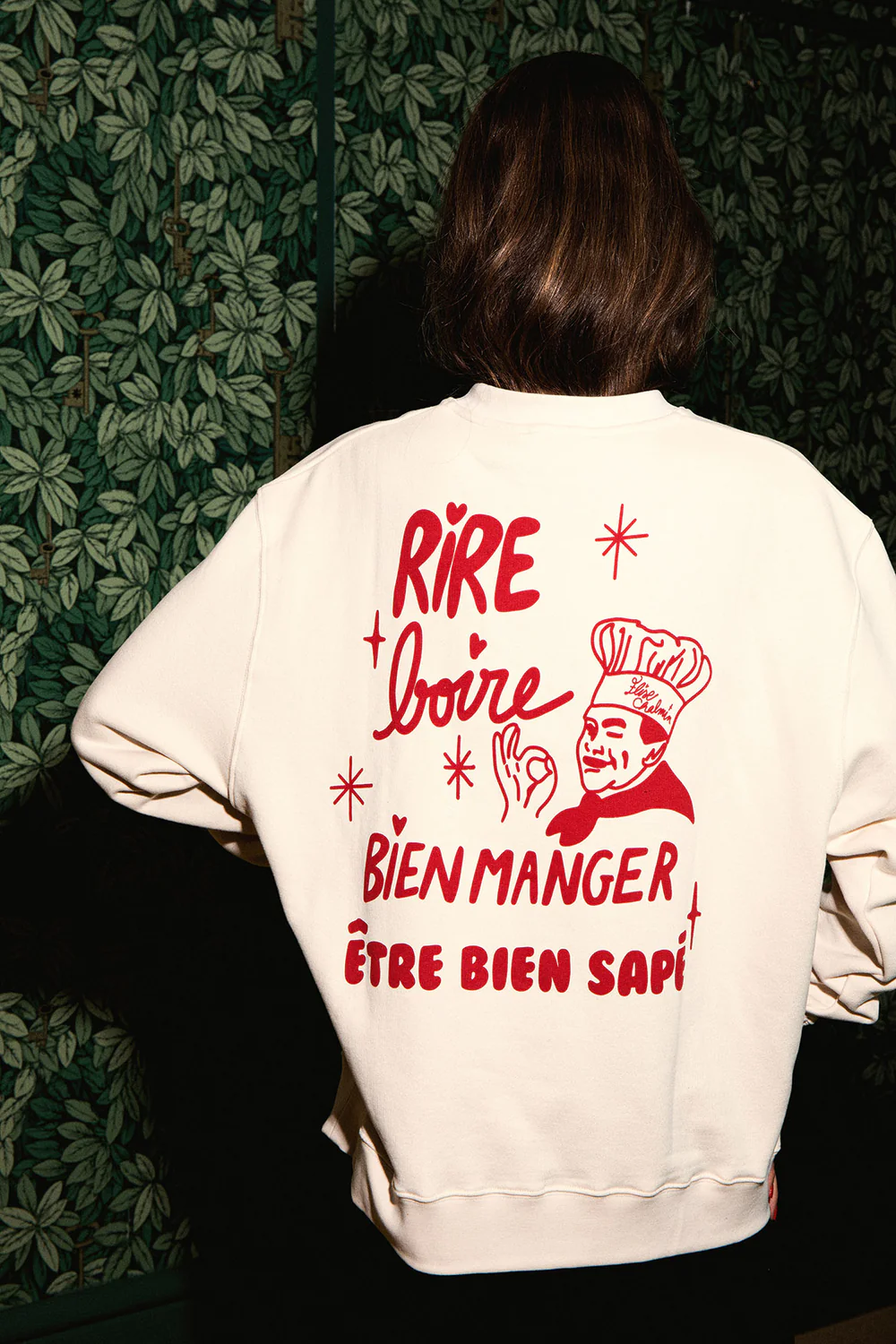 Après le succès de notre t-shirt au mantra « Rire, boire, bien manger et être bien sapé », découvrez notre sweat-shirt oversize. Taille grand.
