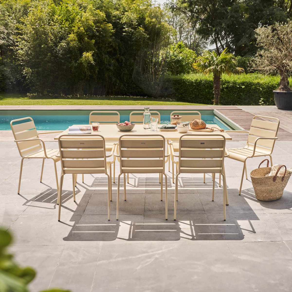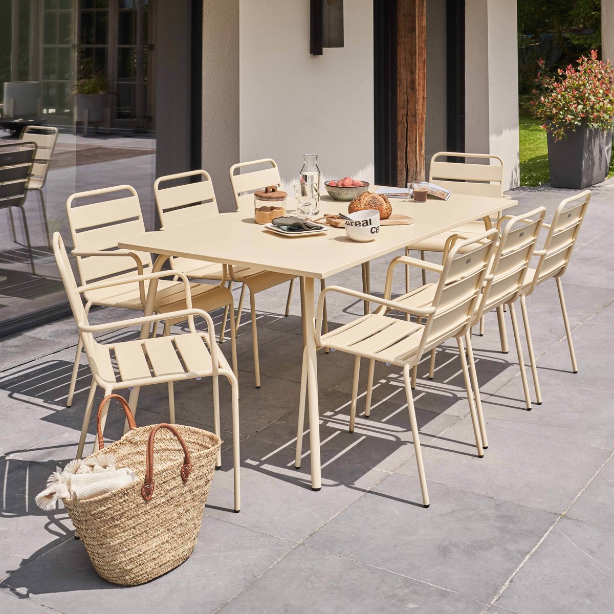 Profitez de repas ou de soirées entre amis dans une ambiance détendue et chic avec le salon de jardin 8 places en métal Palavas. La grande table de jardin et ses 8 fauteuils tout en acier sont taillés sur mesure pour une vie en extérieur et s’entretiennent très facilement. Avec son style minimaliste et indémodable, le salon de jardin 8 places apporte en plus une touche déco unique.