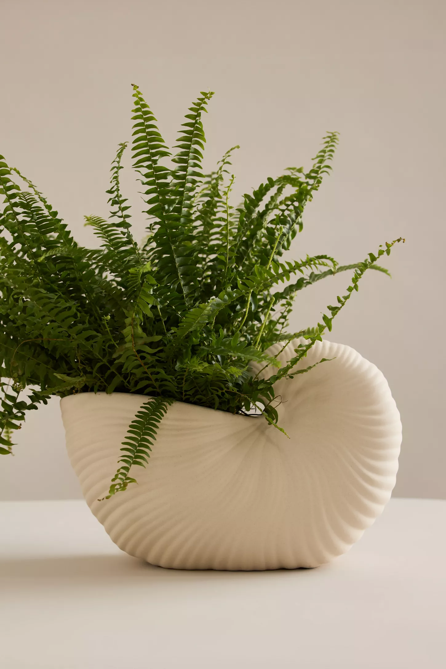 Apportant un charme côtier et un design sculptural où que vous le placiez, ce pot en forme de coquillage peut être rempli de fleurs, de feuillage ou utilisé comme une œuvre d’art autonome à admirer.